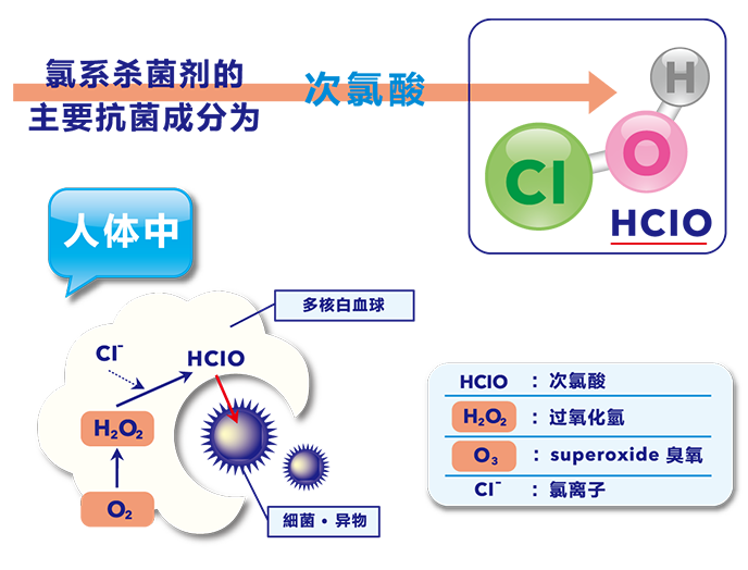 而且人体内一种嗜中性粒细胞也能自己分泌次氯酸来吞噬、杀灭病原菌。